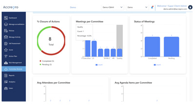 Features of this module extend to the management of meeting agendas and minutes, issue tracking, action requirements, responsible persons, and timeframes. It also has the capability to generate committee demographics