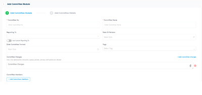 Features of this module extend to the management of meeting agendas and minutes, issue tracking, action requirements, responsible persons, and timeframes. It also has the capability to generate committee demographics